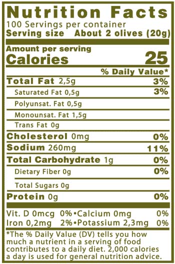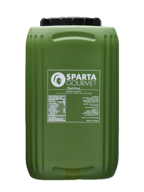 Sparta Gourmet's Green Olives Pitted (22 lbs) are green olives that have had their pits removed. They are often sold in brine and are used in a variety of dishes or as a snack. Pitting makes them more convenient for cooking and eating, as the pit is already removed. Some food sites say they are also more versatile, as they can be easily stuffed or sliced. Sold Individually.