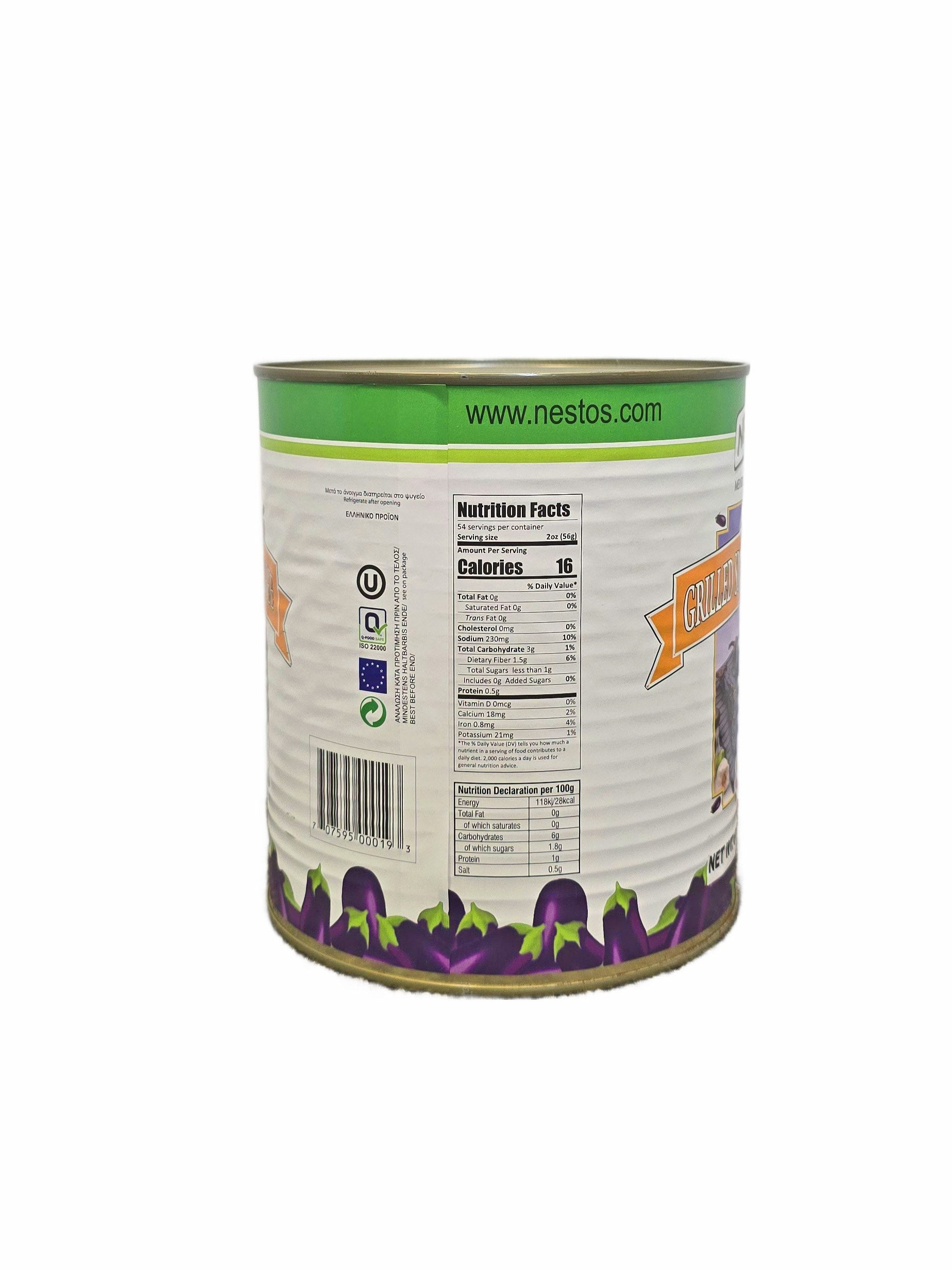 Nestos Foods Grilled Eggplant Puree (Canned) (6 lbs) is a ready-to-eat product made from fire-roasted Greek eggplants, known for its traditional flavor and high nutritional value. It's a versatile ingredient, perfect for making dips, spreads, and adding to various recipes like baba ghanoush or pasta sauce. The puree is characterized by a smoky flavor and aroma, and is often described as having a smooth texture. Sold Individually.