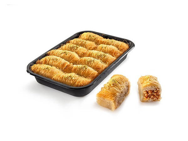 Rodoula's Kataifi (18 pieces) Golden baked delicious kadaifi lightly buttered with a mix of fine nuts (walnuts, almonds and pistachios) syruped with lemon aroma. Sold Individually.